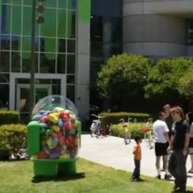As a prime example for using one of a kind outdoor installations to reinforce their brand Android, a popular operating system for mobile phones, Google created statues to resemble different versions of Android, each named after a kind of food or confection. To add visual interest while representing their brands, on the lawn of Google’s corporate headquarters in Mountain View, California, are statues are shaped like and represent Android versions including Honeycomb, Ice Cream Sandwich and Gingerbread. This installation has also revealed a corporate secret for those who paid attention. Before revealing Jelly Bean, the latest version of Android to come out, Google installed a new statue depicting the Android mascot filled with Jelly Beans, confirming this as the next version of Android.
